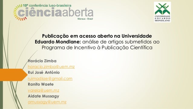 Publicação em acesso aberto na Universidade Eduardo Mondlane: um olhar sobre os artigos submetidos no âmbito do programa de incentivo à publicação científica