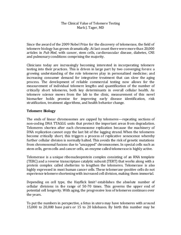 The clinical value of telomere testing – dr. Mark Tager A4M May 2016