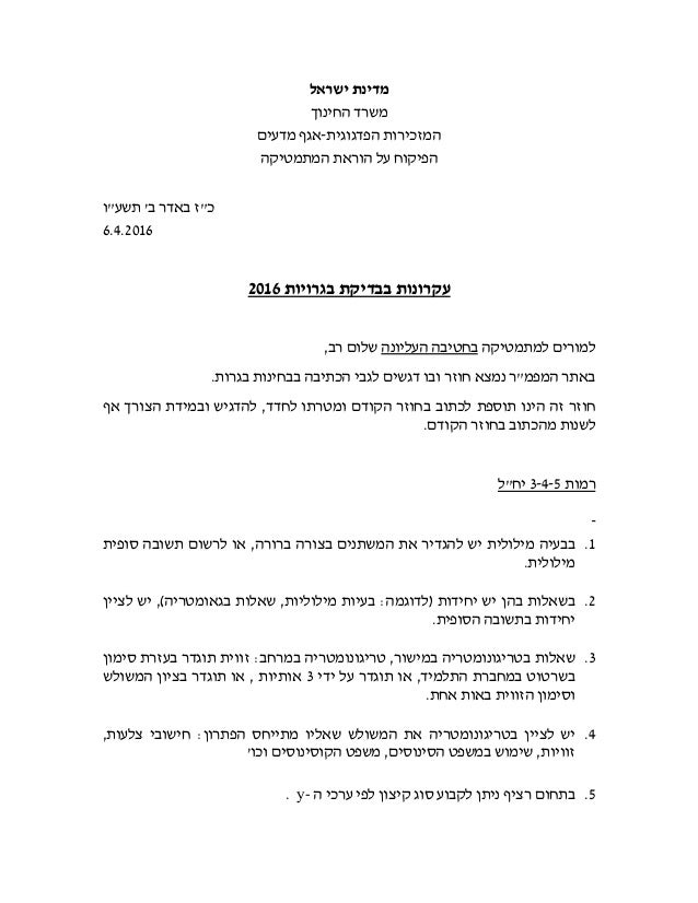 שאלון 806 בגרות קיץ מועד ב 2016