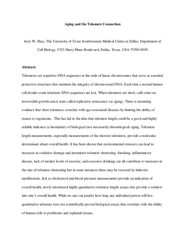 Aging and the telomere connection dr. Jerry w. Shay - april 2012