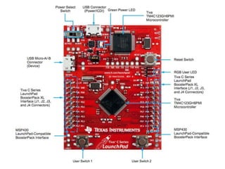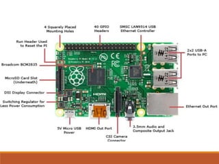 The document discusses several embedded application development platforms including Arduino, Raspberry Pi, Tiva C Series, and MSP430. It provides overview information on each platform, including key components, features, programming languages supported, and examples of applications. For Arduino, it describes the Arduino Uno board in detail. For Raspberry Pi, it outlines the basic specifications and components. For Tiva C Series and MSP430, it summarizes the development boards and features of the microcontrollers.