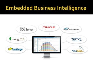 Embedded BI involves integrating reports, dashboards, and analytics directly into applications to provide relevant data insights to users. This improves usability by placing information in the proper context within an application's interface. Using an embedded BI platform delivers state-of-the-art reporting and analytics without the time and expense of building these capabilities separately.