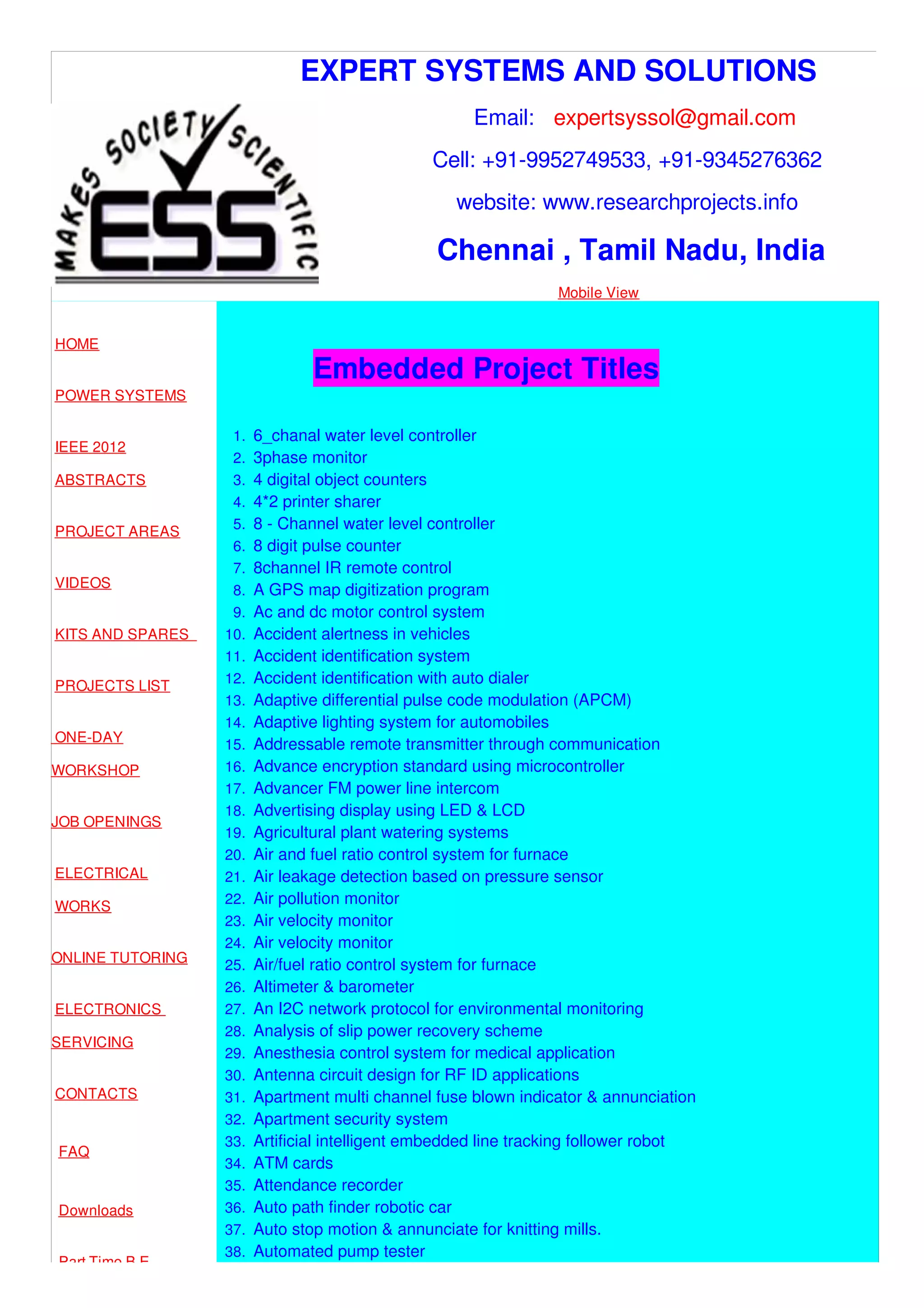 This document lists 441 potential embedded project titles that could be undertaken by students in a part time B.E program. The projects cover a wide range of topics including motor control systems, security systems, industrial automation, embedded networking, data acquisition systems, and more. Many of the projects involve interfacing sensors and actuators with a microcontroller to monitor and control real-world processes.