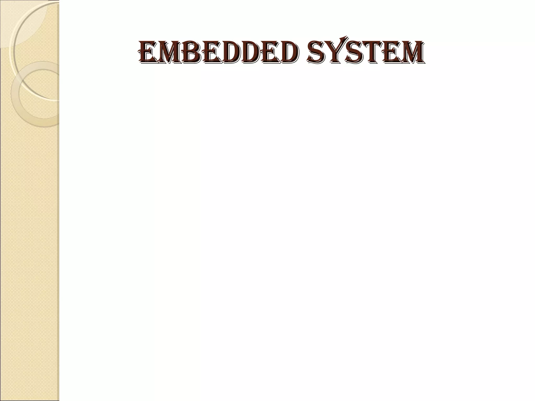 This document discusses embedded systems and their role in everyday devices. It provides details on embedded system design, hardware, memory types, programming languages and applications. Embedded systems combine computer hardware and software to perform specific tasks, and are found in watches, phones, vehicles and more. They differ from general computers in being dedicated to a single purpose. The document concludes that embedded systems are essential technologies that will continue growing significantly.