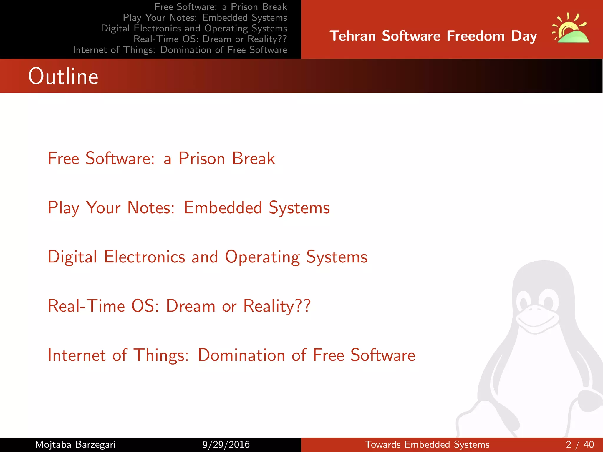 The document discusses the significance of free software, particularly in the context of embedded systems, detailing the essential freedoms it provides to users. It outlines the history and advantages of GNU/Linux, emphasizing its role in the Internet of Things (IoT) and various applications in modern technology. The presentation also touches upon the challenges of real-time operating systems and the transformative impact of free software on device connectivity and functionality.