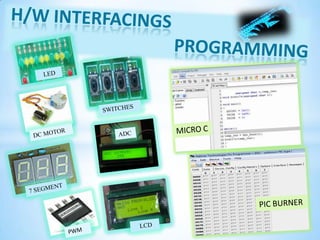 The document outlines learning objectives related to programming microcontrollers, specifically the PIC16F73, using embedded C and interfacing with various devices. It discusses PCB design using Orcad software and the advantages of microcontroller-based embedded systems over microprocessors. Additionally, the document describes the development of a DTMF-controlled robot project that utilizes these principles for operation and control.