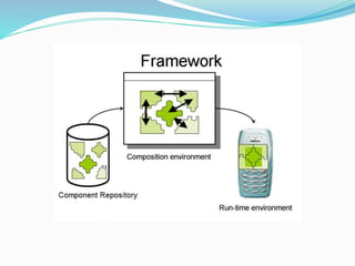 This document discusses component-based embedded systems. It begins by defining component-based technology as breaking large software applications into reusable modules. Embedded systems are computer systems that are part of a larger mechanical or electrical system. Combining component-based technology and embedded systems allows for reusable software components to be developed and configured for specific embedded devices. The document then discusses how component-based approaches can address needs in various domains that use embedded systems like automotive, industrial automation, and consumer electronics. It concludes by discussing priorities and improvements for using component-based software engineering in embedded systems, such as achieving predictability and developing widely adopted component models for real-time systems.
