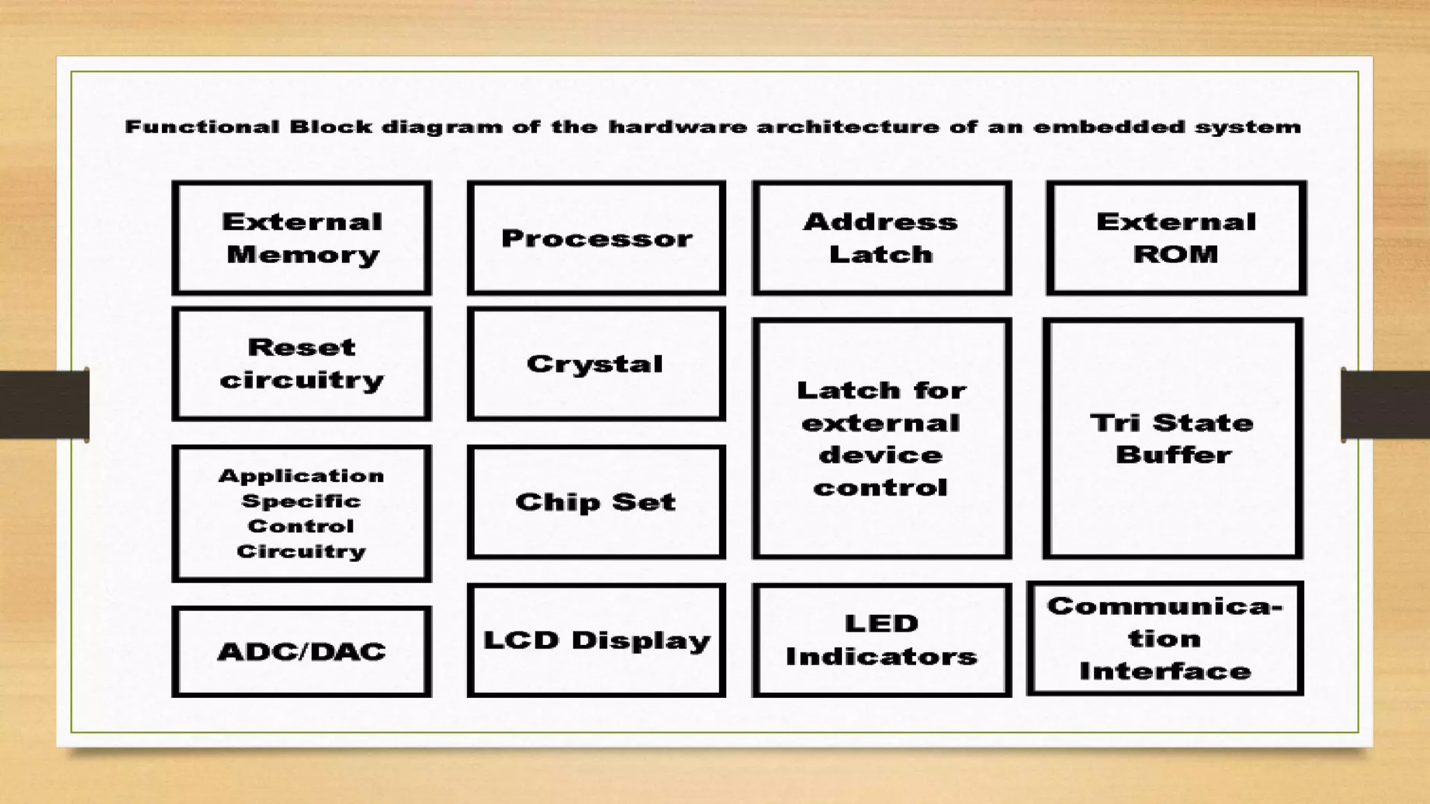 This document defines and compares embedded systems and computer systems. It discusses the categories and requirements of embedded systems, including standalone, real-time, and networked systems. It describes the typical hardware architecture of embedded systems, including processors, memory, input/output components, and communication devices. The document outlines advantages like low cost and small size, and disadvantages such as difficulty in maintenance. It provides examples of applications for embedded systems in various industries.