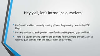 This document provides an introduction to computer architecture for a workshop on embedded systems. It begins with the presenters introducing themselves and outlines the course. It then discusses key concepts in computer architecture like the computer stack, different types of processors, performance metrics, memory hierarchy, pipelining, real-time operating systems, and multicore processors. The goal is to equip participants with foundational knowledge of computer architecture that will help them in their work on embedded systems.