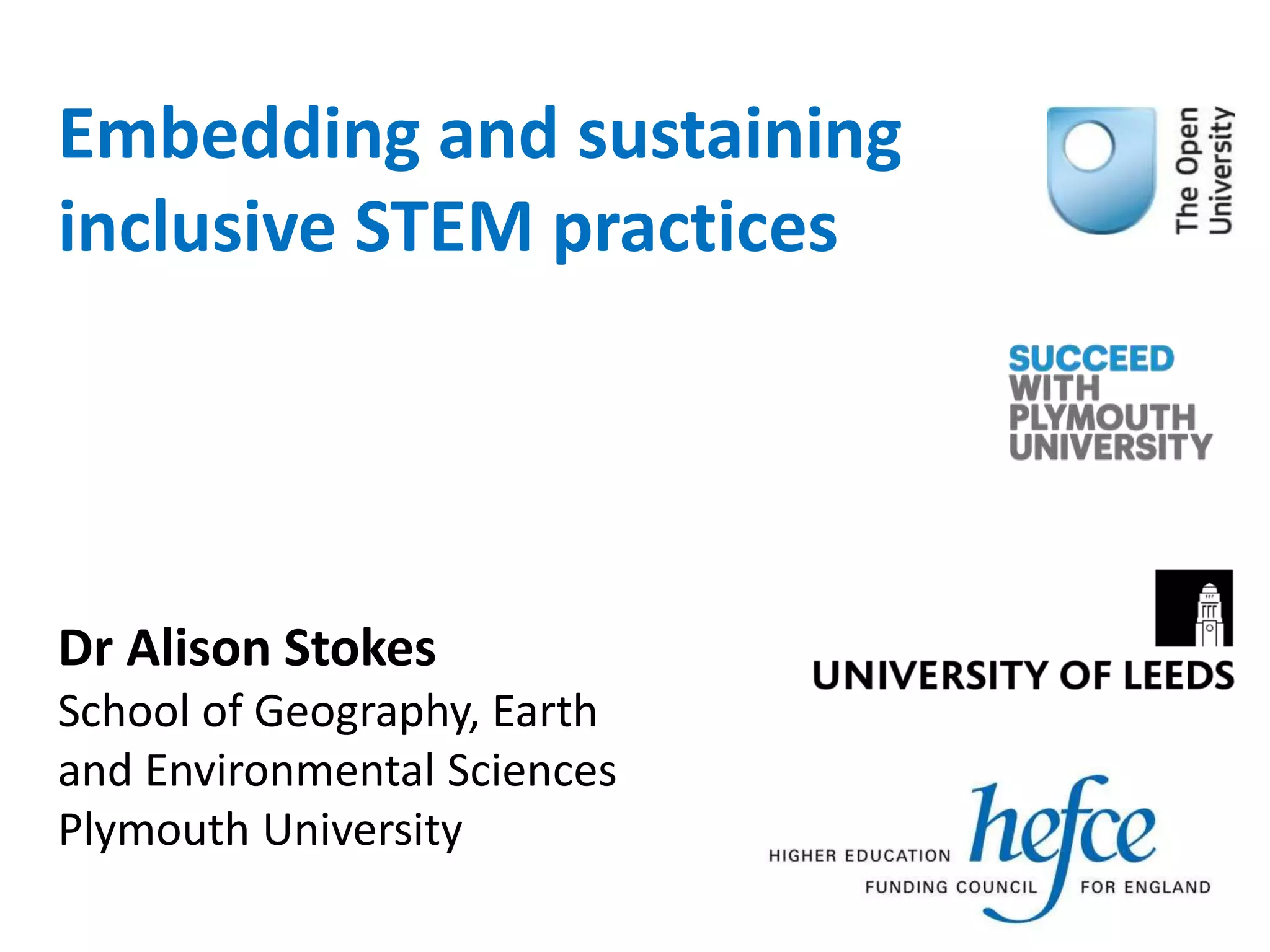 This document discusses embedding inclusive practices in STEM education. It notes that inclusive education considers student diversity and embeds equality principles. The project aims to scale inclusive design in STEM modules to benefit all students, including those with disabilities, by gathering case studies and guidelines. Partners from three universities will collaborate on projects like accessible virtual labs and field courses. Engagement with students, staff, networks, and professional bodies will explore barriers and effective practices in teaching, learning, accreditation and employment for environmental science.