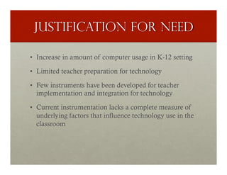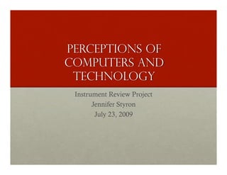 This presentation was prepared to fulfill the requirements of an IT course assignment. In this assignment we had to upload a previous presentation and embed audio using Slideshare. The presentation discusses the evaluation of a technology instrument for reliability and validity which was completed for a Research and Statistics course.