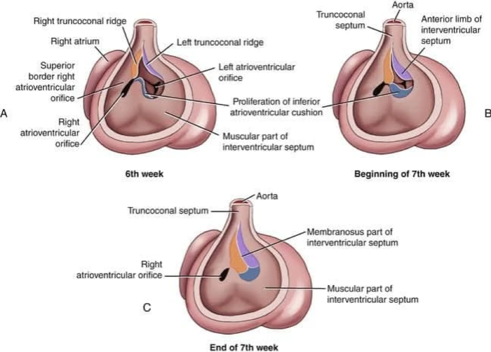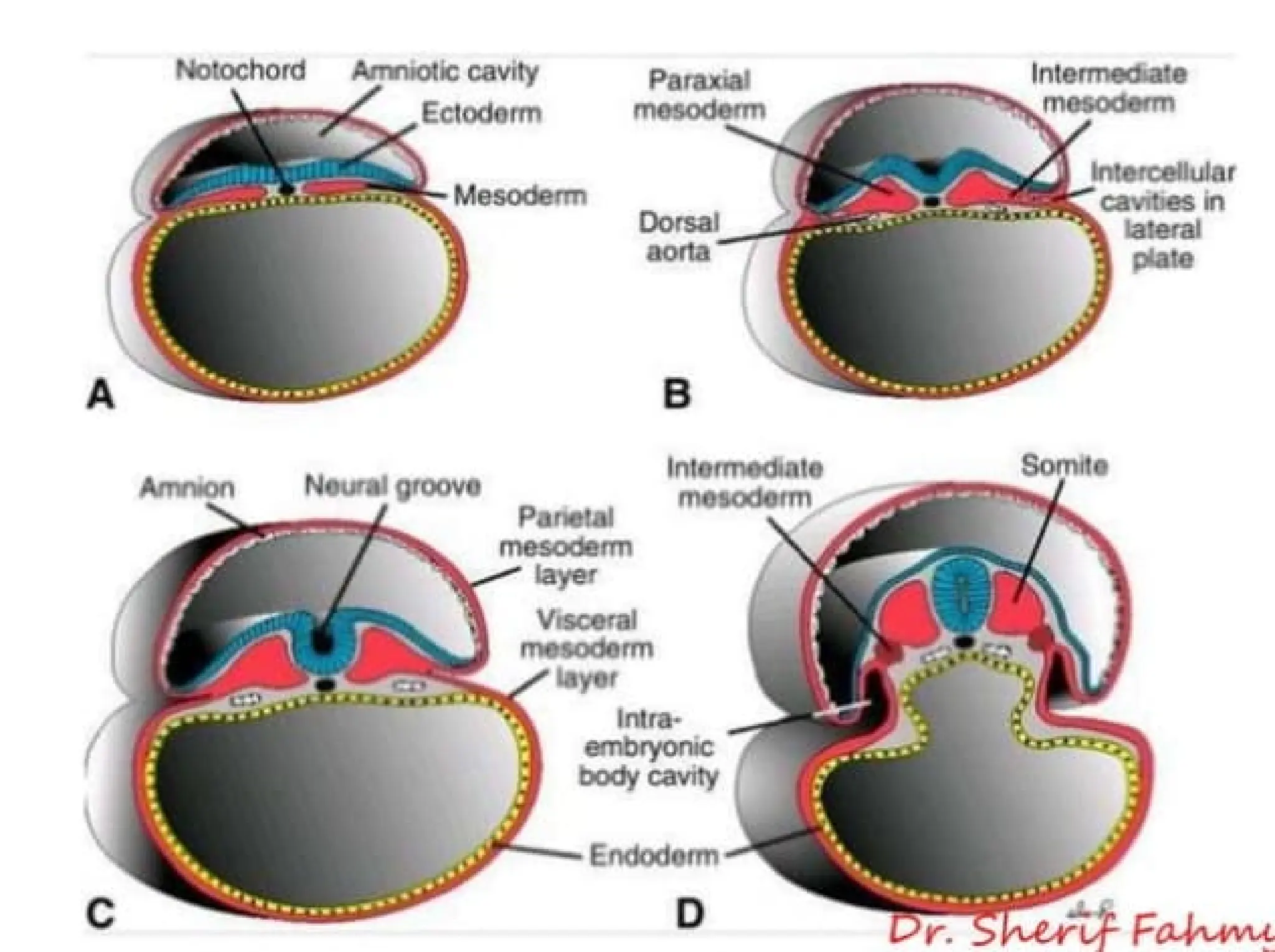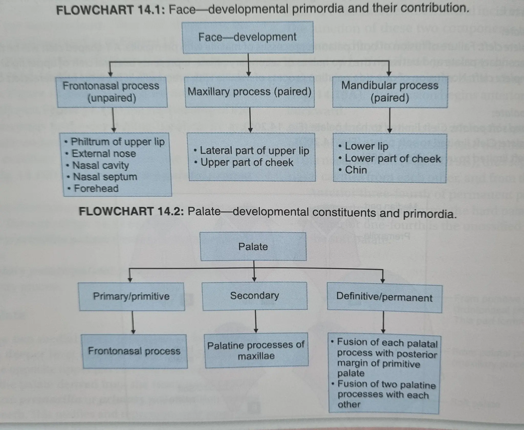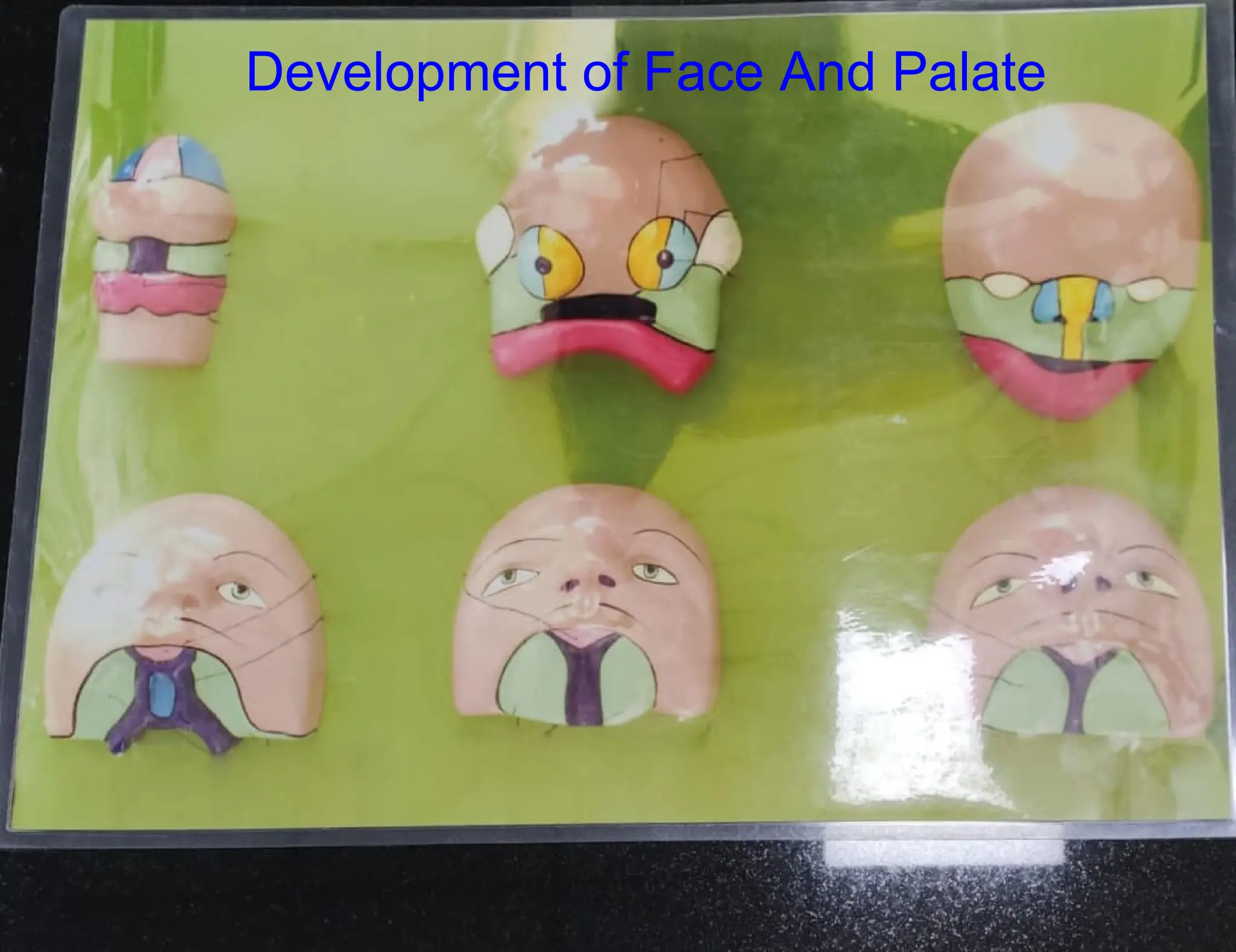 The document discusses the developmental processes related to facial and palatal formation, highlighting key stages like neural tube formation and the migration of primitive streak cells. It also describes structures such as aortic arches and the bulboventricular cavity, along with aspects of somite and mesoderm development. Additionally, it outlines the partitioning of the heart and concepts of fetal circulation.