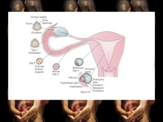 The document discusses human embryonic and fetal growth and development. It defines key terms and outlines the objectives of covering the stages of intrauterine development from zygote to fetus. It describes the three primary germ layers that develop into organ systems, and the changes that occur in each stage of embryonic and fetal growth. Finally, it provides detailed information about fetal growth and development in each lunar month of pregnancy.