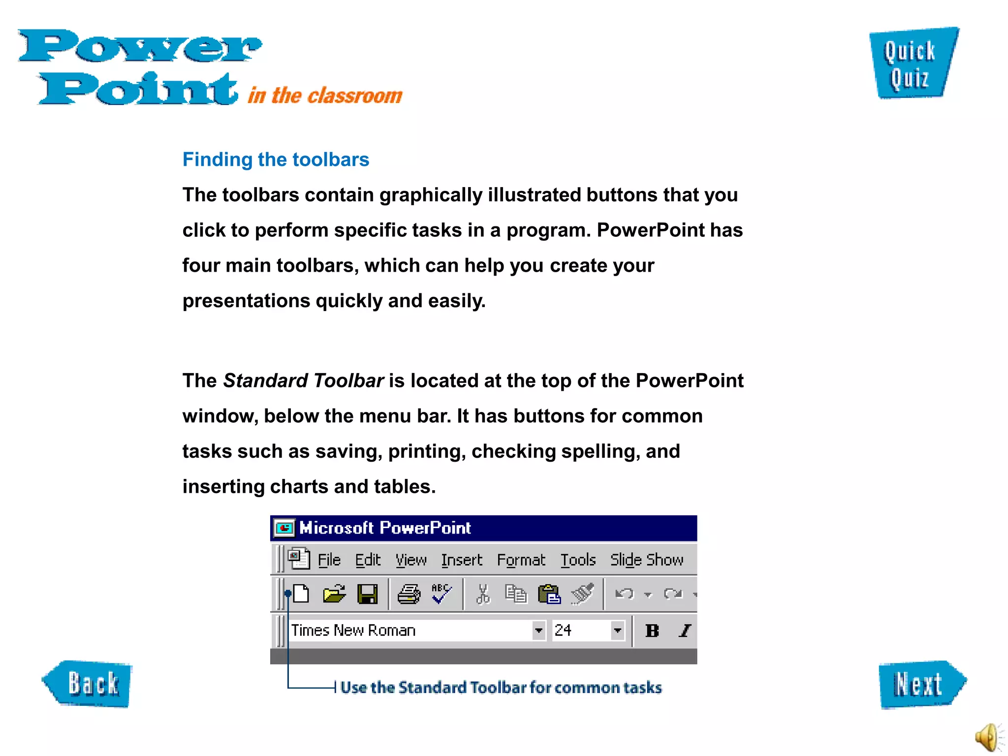 The document provides an overview of PowerPoint toolbars and the Office Assistant. It discusses the four main toolbars in PowerPoint - the Standard Toolbar, Formatting Toolbar, Drawing Toolbar, and how to move and dock them. It also covers how to add and remove other toolbars. Finally, it describes how to activate and use the Office Assistant to get help within PowerPoint.