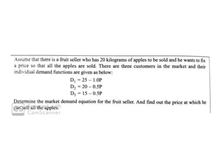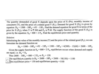 The document provides an overview of demand, including the definition of demand, types of demand, and determinants of demand. It defines demand as the effective desire backed by willingness and ability to purchase a product at a given price and time. The document outlines the different types of demand and determinants, and notes that the demand function shows the interdependence between demand for a product and its determinants in a mathematical form.
