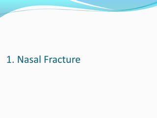 This document provides information on various ear, nose, throat and head and neck conditions commonly seen in emergency departments. It discusses the presentation, investigations, management and criteria for admission of nasal fractures, epistaxis, post-tonsillectomy bleeding, ear emergencies, head and neck infections, and ingested foreign bodies. Procedures for examining and removing foreign bodies from the throat are also outlined. The document serves as a guide for evaluating and treating ENT emergencies.