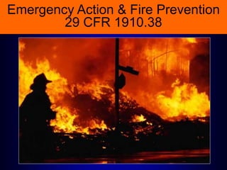 This document provides information on emergency preparedness and fire prevention. It discusses potential workplace hazards and appropriate responses to fires, chemical spills, and natural disasters. Employees should understand emergency procedures like evacuation assignments and signals. Proper use of fire extinguishers and preventative measures like controlling flammable materials and electrical safety are emphasized. Quizzes are included to test understanding.