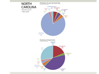This document discusses hazard mitigation planning challenges in coastal North Carolina. It notes that while the 20 coastal counties have certified hazard mitigation plans, implementing the policy recommendations in the plans remains uneven. Structural mitigation like levees can encourage development in risky areas and have limits. The National Flood Insurance Program also has limitations, as it does not adequately reflect risk and operates at a loss. In conclusion, simply having a hazard mitigation plan does not ensure implementation. Efforts are needed to help counties balance safety and costs, address fragmented implementation among agencies, and provide targeted assistance to rural counties.