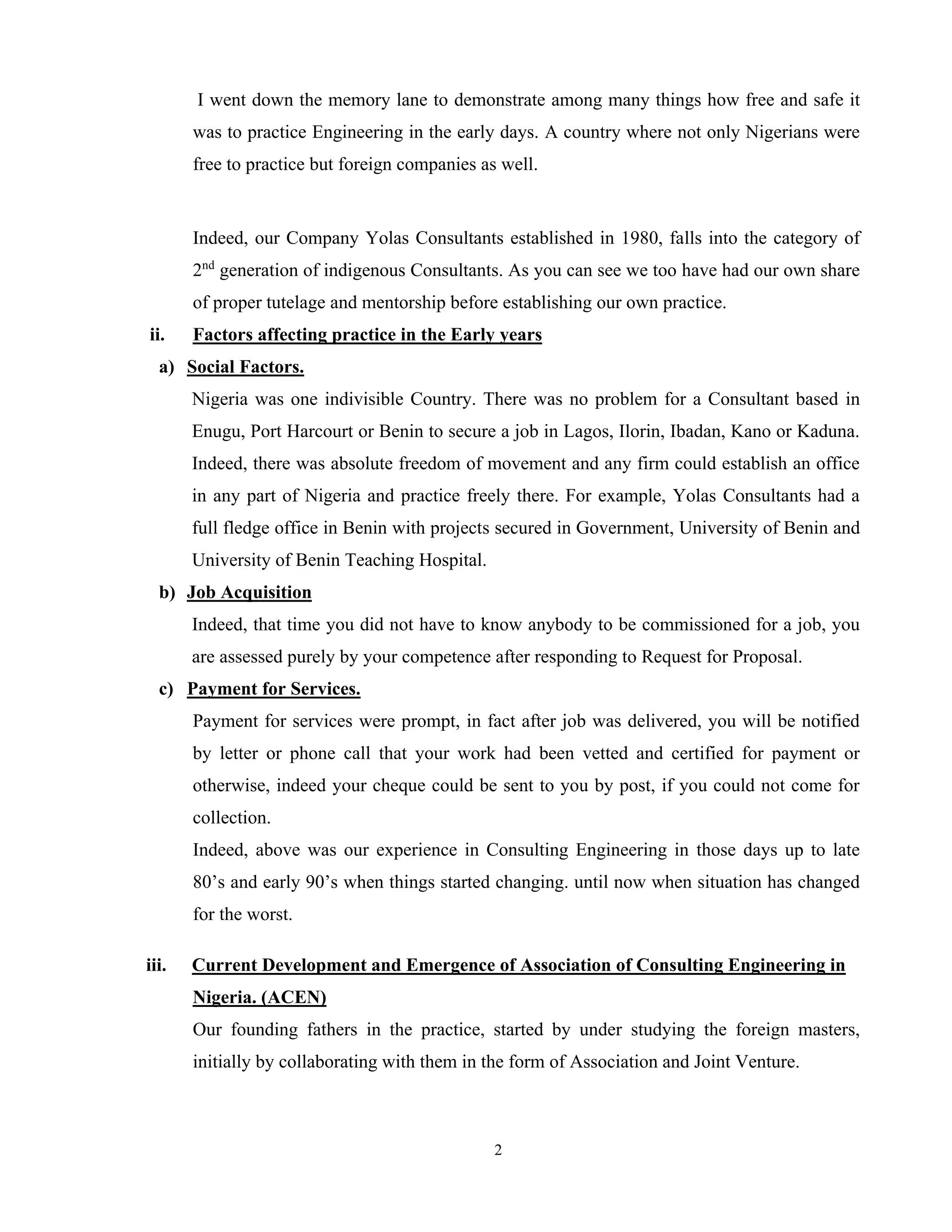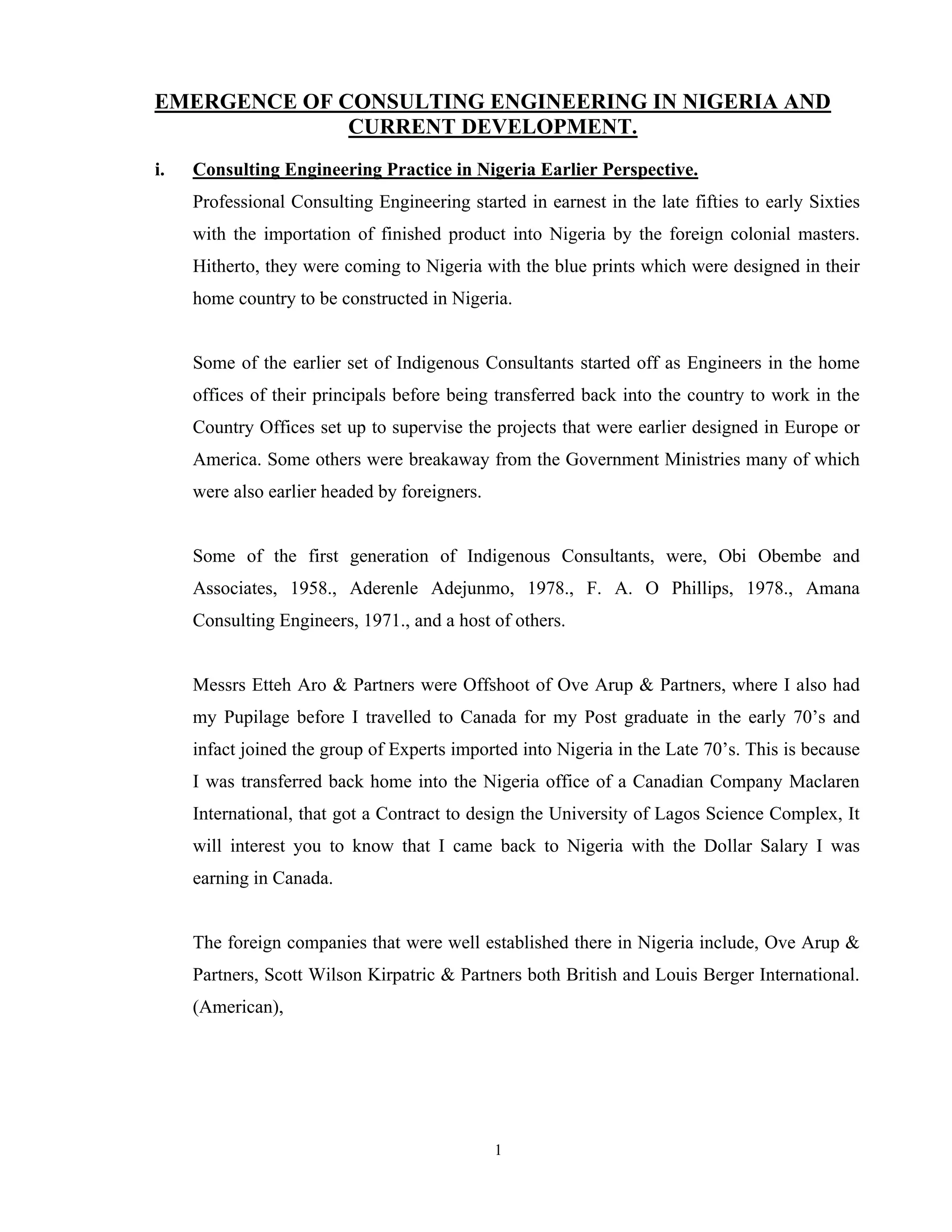 i. Consulting Engineering Practice in Nigeria Earlier Perspective.
