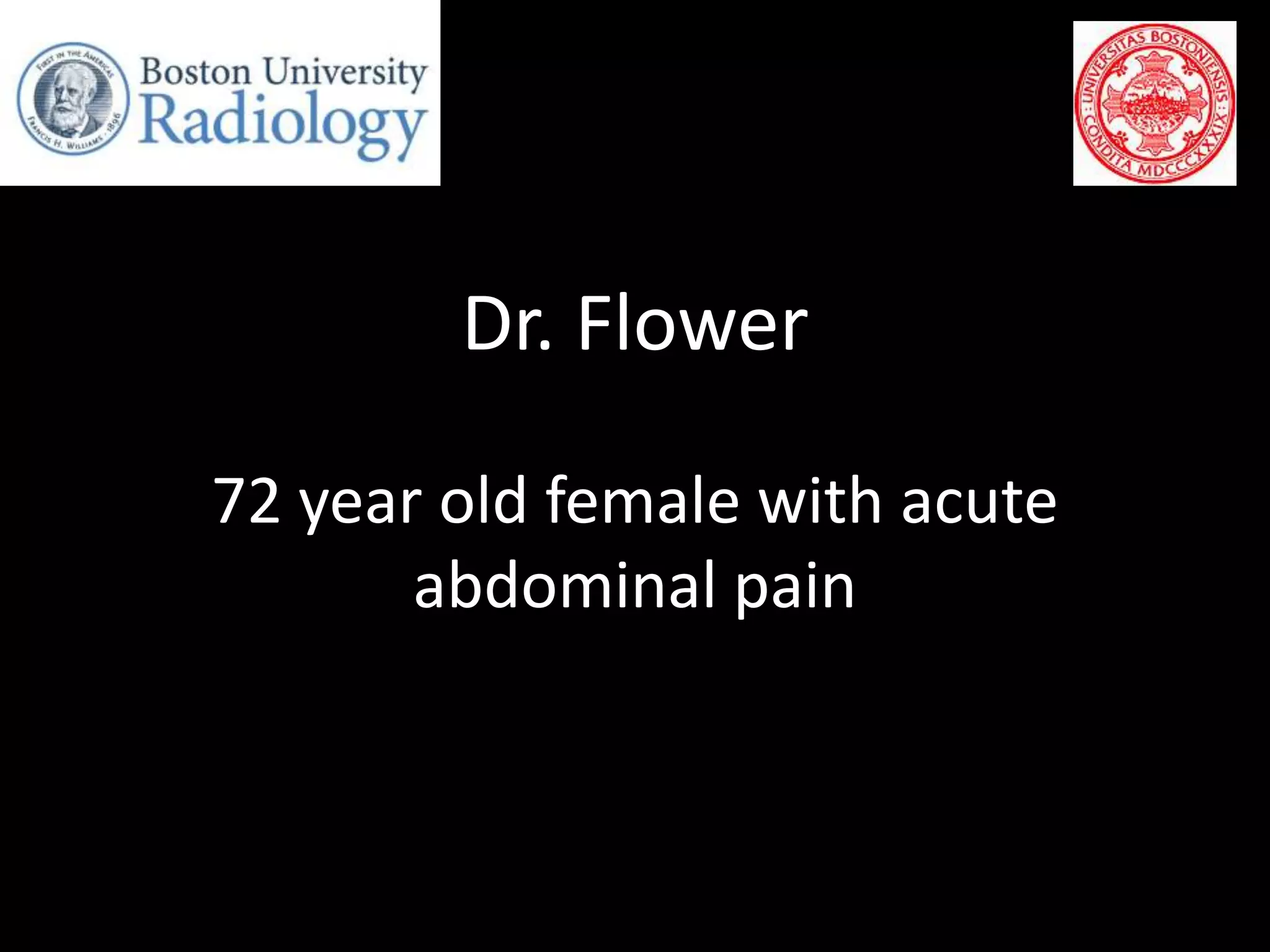 This document describes four patient cases seen by different doctors, including a 72-year-old female with abdominal pain, a 42-year-old female with abdominal pain and bloody diarrhea, a 37-year-old male with chest pain and vomiting of digested blood, and a 67-year-old male with an abnormal heart ultrasound.