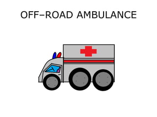 This document lists different types of emergency vehicles including off-road ambulances, fire and police mobile command centers, tactical support units, radio emergency patrol trucks, rehab units, police cars, ambulances, fire engines, and tow trucks.