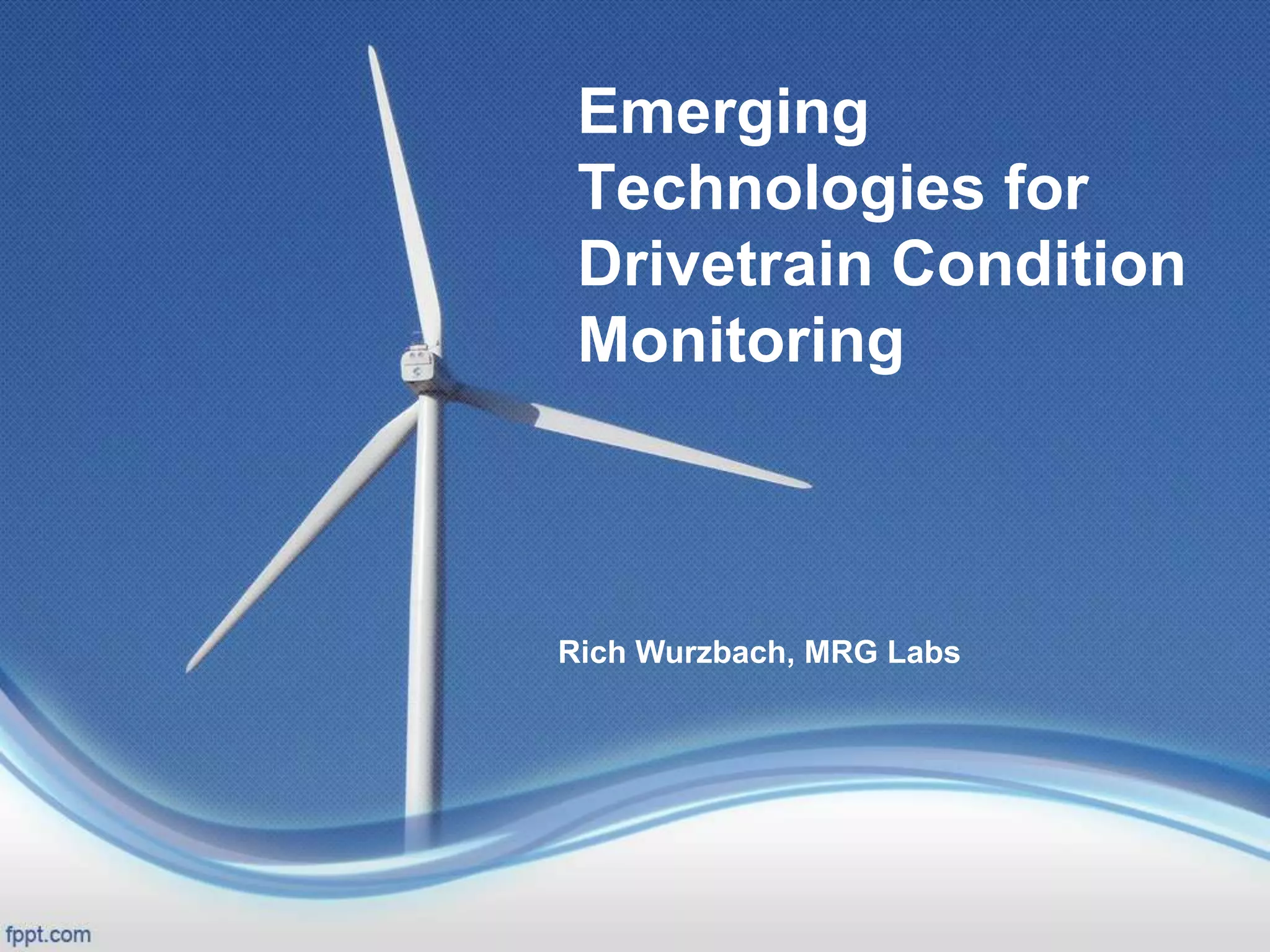 The document discusses emerging technologies for drivetrain condition monitoring in wind turbines, highlighting the importance of real-time monitoring and proven technologies from power generation applications. It details various diagnostic methods including infrared thermography, grease analysis, acoustic emission, and ultrasonic monitoring, including their advantages and challenges. The document also mentions a collaborative project among major offshore wind operators in Europe to evaluate grease sampling methods and the application of these diagnostic technologies.