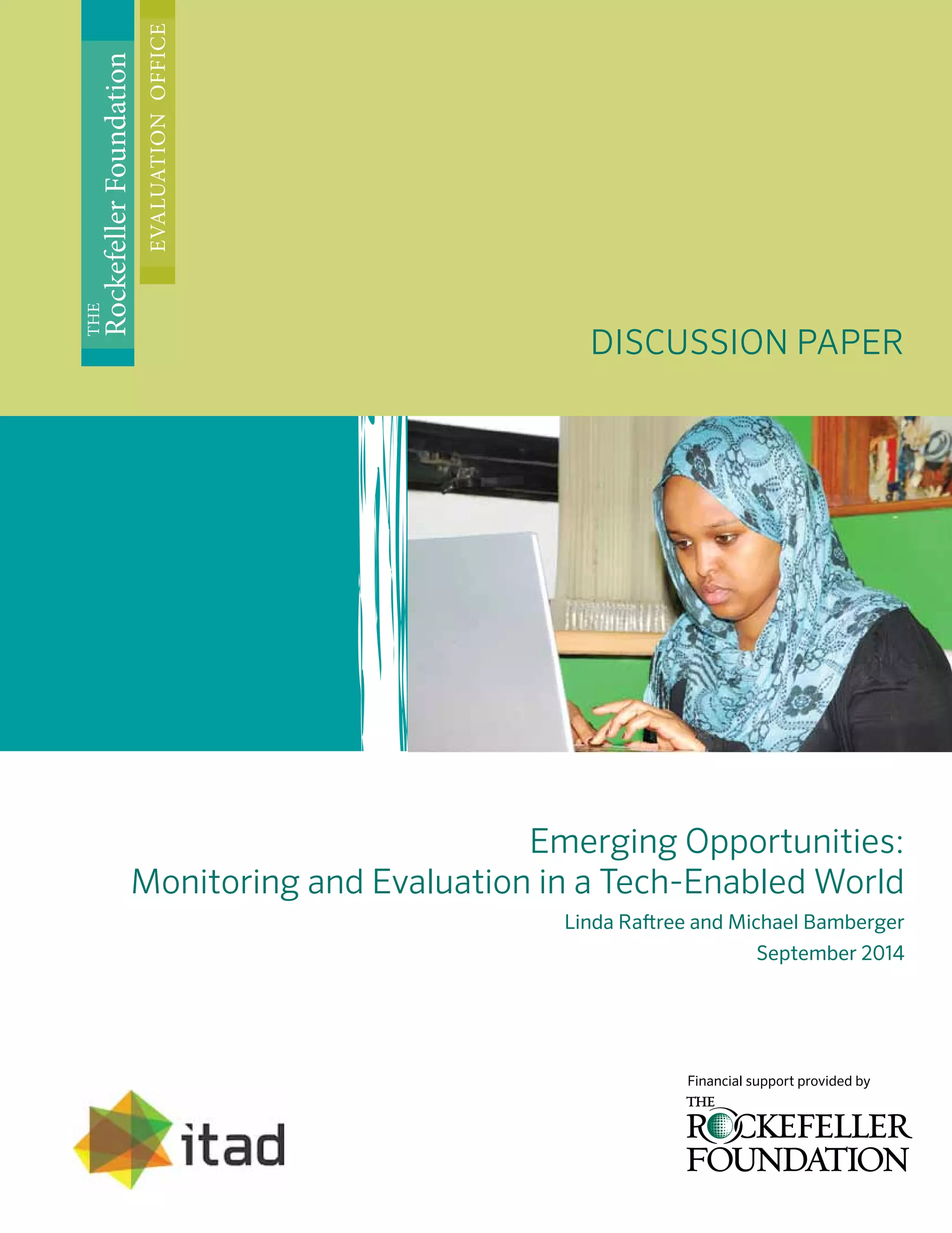 The document discusses the emerging opportunities and challenges in monitoring and evaluation (M&E) within the context of technology and information communication technologies (ICTs) as tools for enhancing international development outcomes. It highlights the need for innovative approaches to meet the demands of complex development environments, detail the current trends in ICT-enabled M&E, and explore potential applications along with associated risks. Additionally, it emphasizes the importance of documenting ICT effectiveness and the need for evaluators to adapt to new technologies while being mindful of biases and methodological issues.
