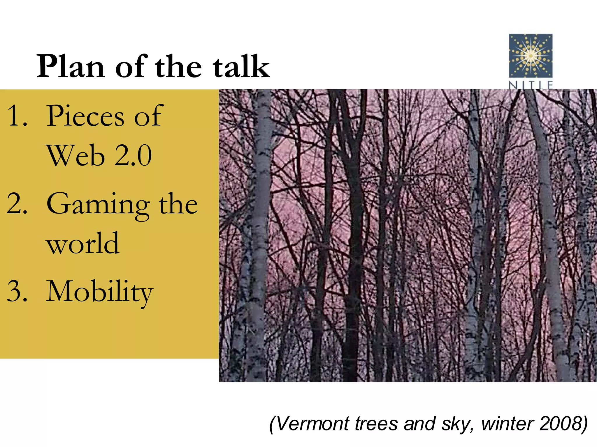This document discusses emerging technologies related to Web 2.0, gaming, and mobile devices and their potential applications in education. It covers topics like wikis, blogs, social networking, virtual worlds, games, podcasting, and more. It also discusses various pedagogical approaches using these tools, including collaborative writing, multimedia literacies, and skills developed through gaming simulations. Overall, the document takes an optimistic view of how these new media can enhance teaching and learning if integrated thoughtfully into academic contexts.