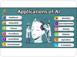 The document discusses various digital transformation technologies, focusing on artificial intelligence (AI) and its subsets like machine learning, computer vision, and generative AI. It outlines applications such as robotic process automation (RPA), speech recognition, and data science in enhancing business processes, particularly in a retail context. Additionally, it categorizes AI based on functionality, capability, and provides insights on both advantages and challenges associated with these technologies.