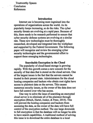 Because cyber threats are constantly changing, new technology is under development by the Federal Government to meet the threats.