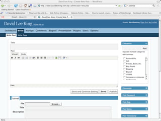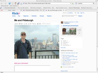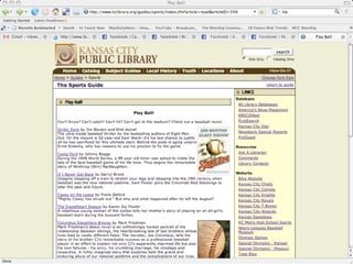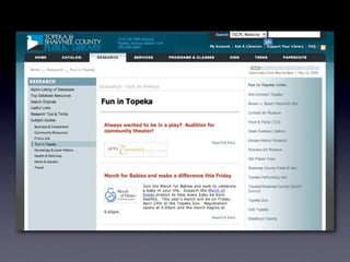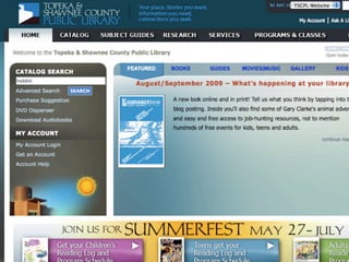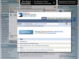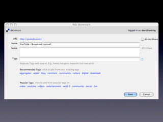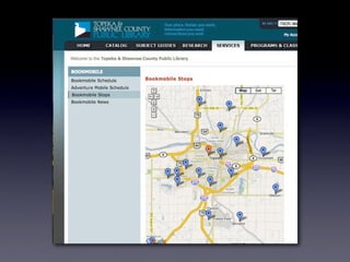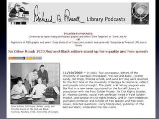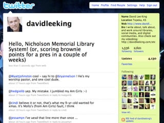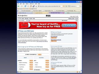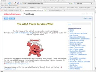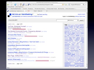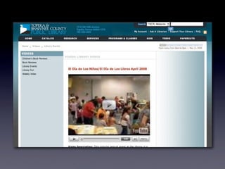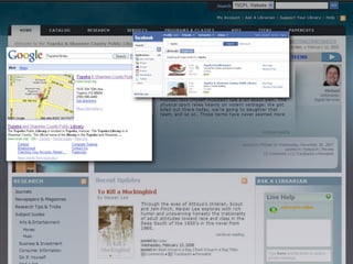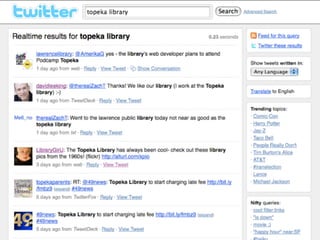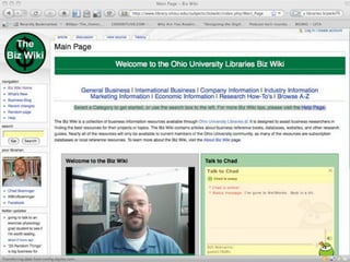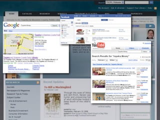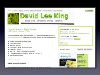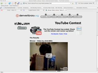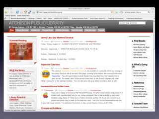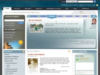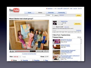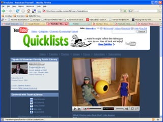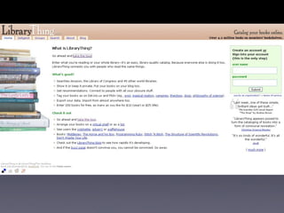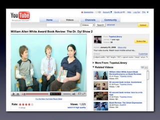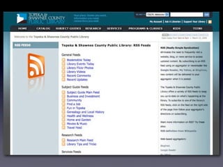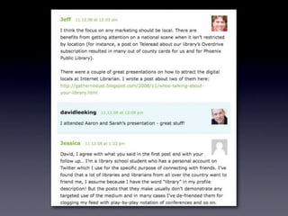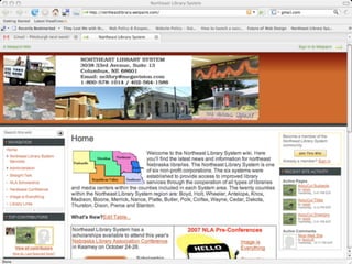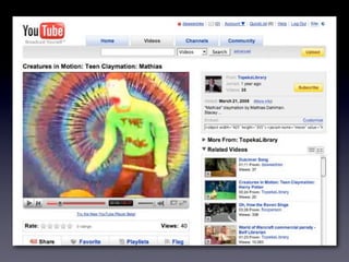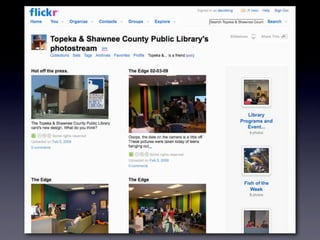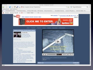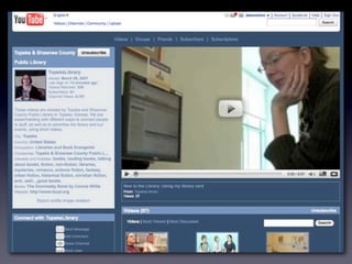 The document discusses Web 2.0 and its impact on libraries, highlighting tools and technologies such as blogs, social networking sites, and wikis that enable communication and community engagement. It emphasizes the importance of user-generated content and various media formats, including podcasts and videocasts, for reaching library patrons. Additionally, it offers practical advice for library staff on implementing these technologies to enhance their services and outreach.