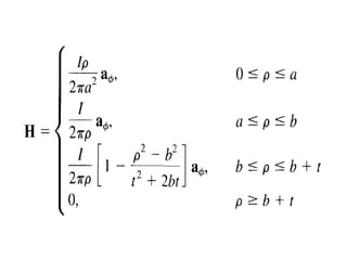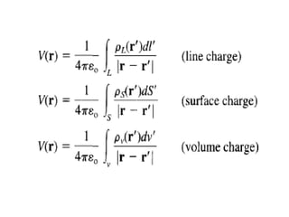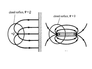 This document provides an introduction to the concept of electromagnetic fields. It begins by discussing electrostatics and defining electric fields as having their sources in electric charges. It then covers Coulomb's law, which describes the electric force between two charges, and Gauss's law, which relates the electric flux through a closed surface to the electric charge enclosed. The document explains electric field lines and flux, superposition of electric fields, and uses Gauss's law to analyze properties of conductors. Finally, it mentions that the next section will cover electric potential. The key information is that the document serves as an introduction to electromagnetic fields, covering fundamental concepts like Coulomb's and Gauss's laws.