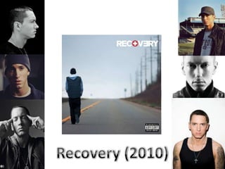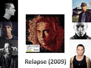 Eminem is an American rapper born in 1972 who is considered one of the best-selling music artists of all time. His albums like The Marshall Mathers LP 2 and Recovery have won him 13 Grammy Awards. Eminem appeals to his target audience through unique album artwork - The Relapse features a photo montage making it stand out, The Curtain Call keeps a consistent blue-green-white color scheme matching the curtain image, and Recovery depicts Eminem's journey on the road after overcoming problems which listeners can relate to.