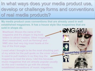 - They discuss how they used conventions from real music magazines and attracted their target teenage audience.