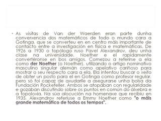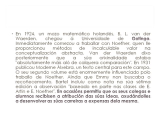 Ao subir áteoría cuántica de campos, a invariancia con respecto á transformación xeral de gauge dá a lei da conservación da carga eléctrica, etcétera. Así, o resultado é unha contribución moi importante á física en xeral, pois axuda a proporcionar intuicións de gran alcance en calquera teoría xeral en física, con só analizar as diversas transformacións que farían invariantes a forma das leis implicadas.
