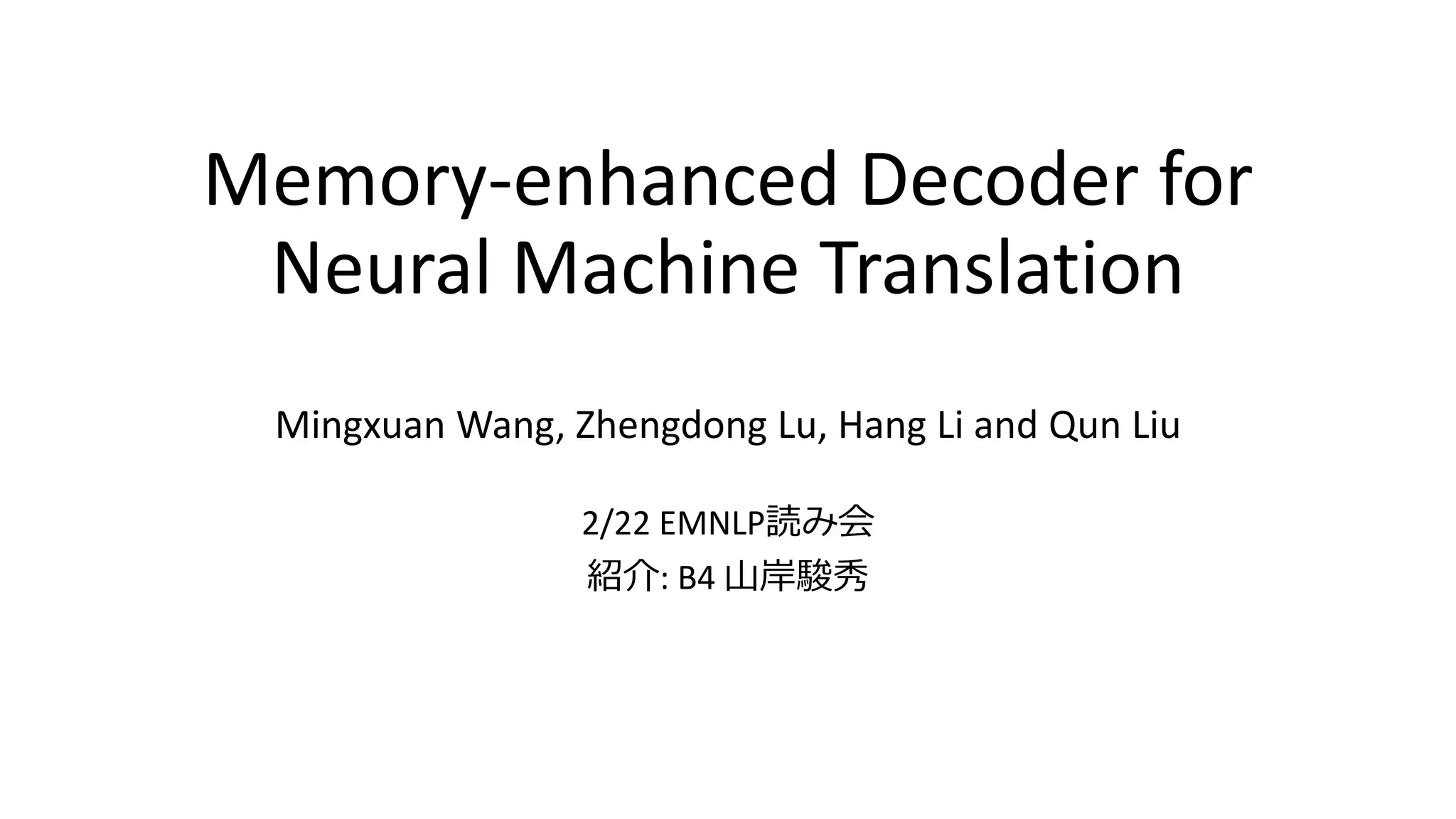 Machine Translation Mingxuan Wang, Zhengdong Lu, Hang Li and Qun Liu 2/22 EMNLP読み会 紹介: B4 山岸駿秀