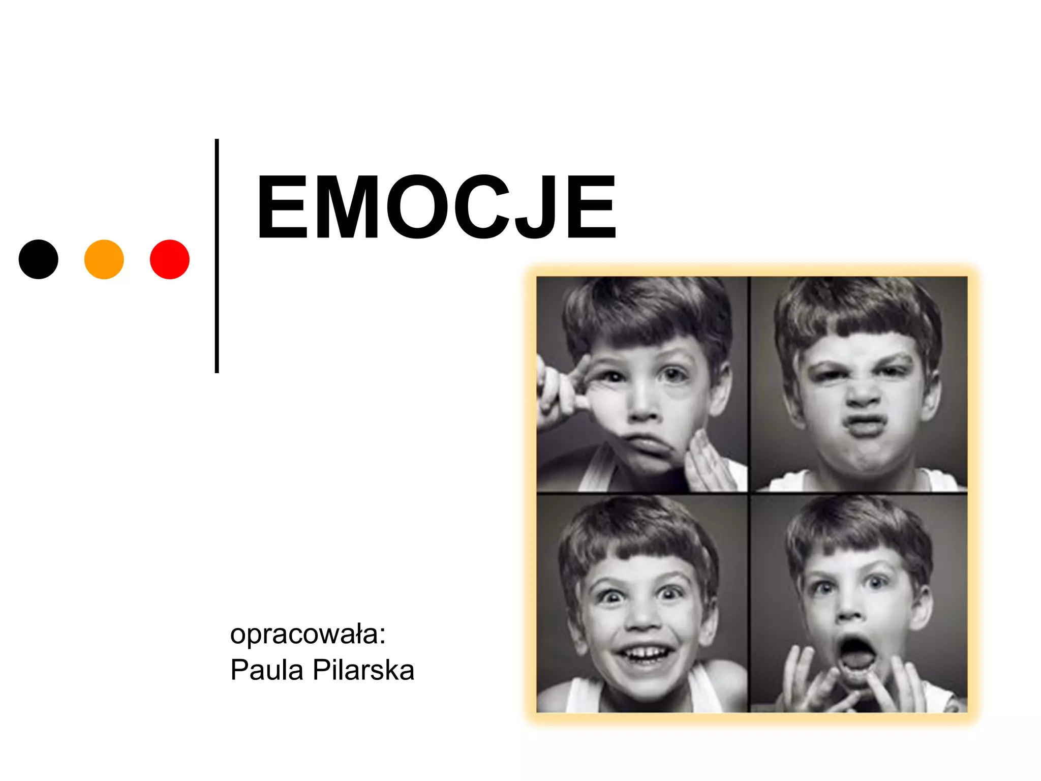 EMOCJE SĄ STANAMIUCZUCIOWYMI ZAWIERAJĄCYMI SKŁADNIKI: poznawcze (interpretacje, wspomnienia, oczekiwania), fizjologiczne (zmiany neuronalne, hormonalne, mięśniowe i trzewiowe), behawioralne (mogą mieć charakter ekspresyjny – płacz, śmiech, lub ukierunkowany na działanie – wołanie o pomoc)