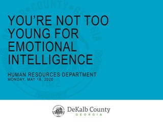 This document provides an overview of emotional intelligence for interns. It defines emotional intelligence as recognizing one's own and others' feelings, motivating oneself, and managing relationships. It identifies common emotions and negative thought patterns like "all-or-nothing thinking" and explains how to develop emotional intelligence through self-awareness, self-regulation, motivation, empathy, and social skills. Contact information is provided for the human resources department.