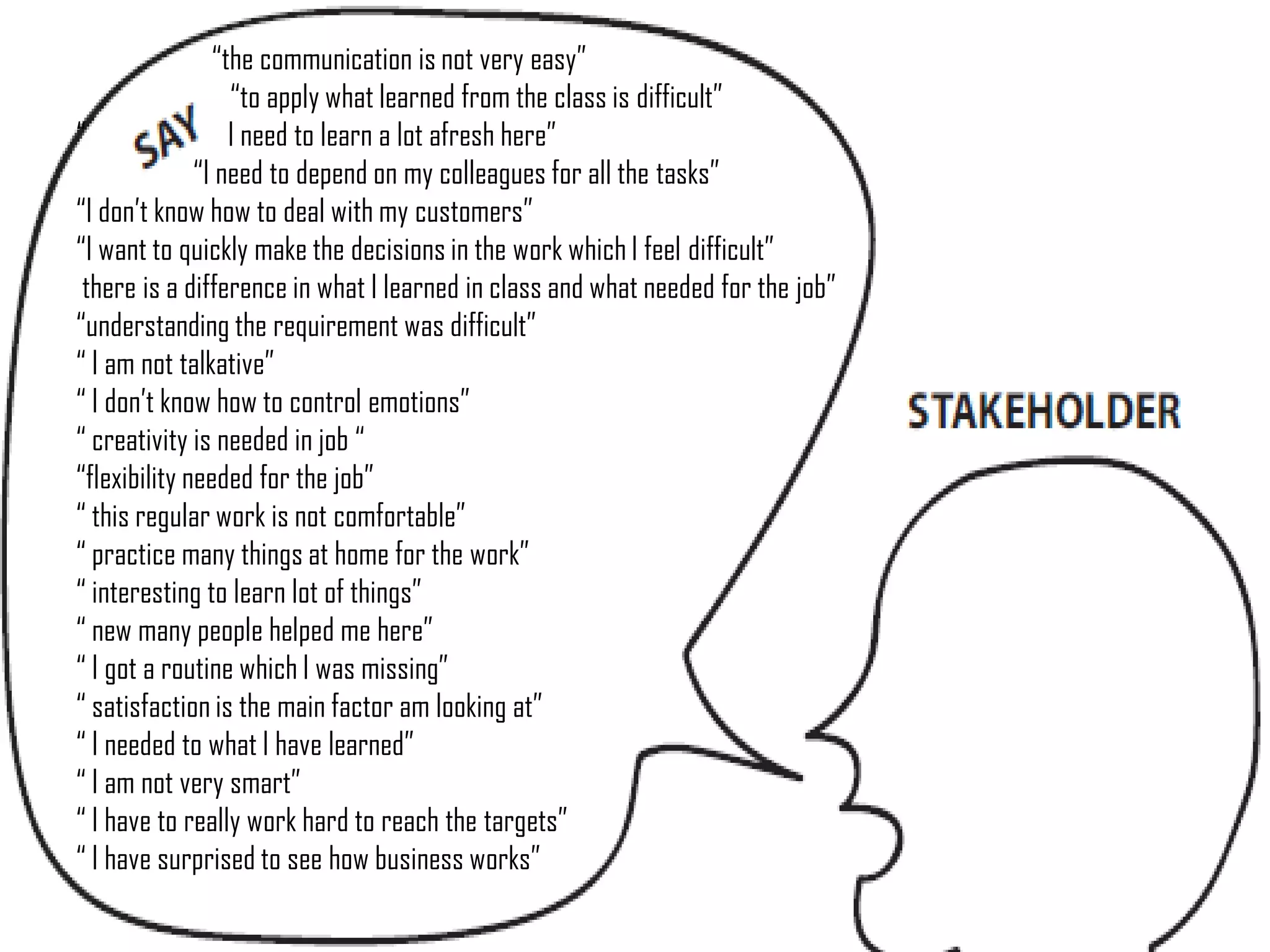 The individual finds the transition from school to work difficult. They struggle with communication, applying classroom knowledge, decision-making, and understanding customer needs. Additional on-the-job learning is needed regarding people, business operations, and developing flexibility, creativity, and emotional control. While the work provides a routine and opportunities to learn, regular tasks are uncomfortable and performance targets require hard work. Support from colleagues is appreciated but independence is desired.