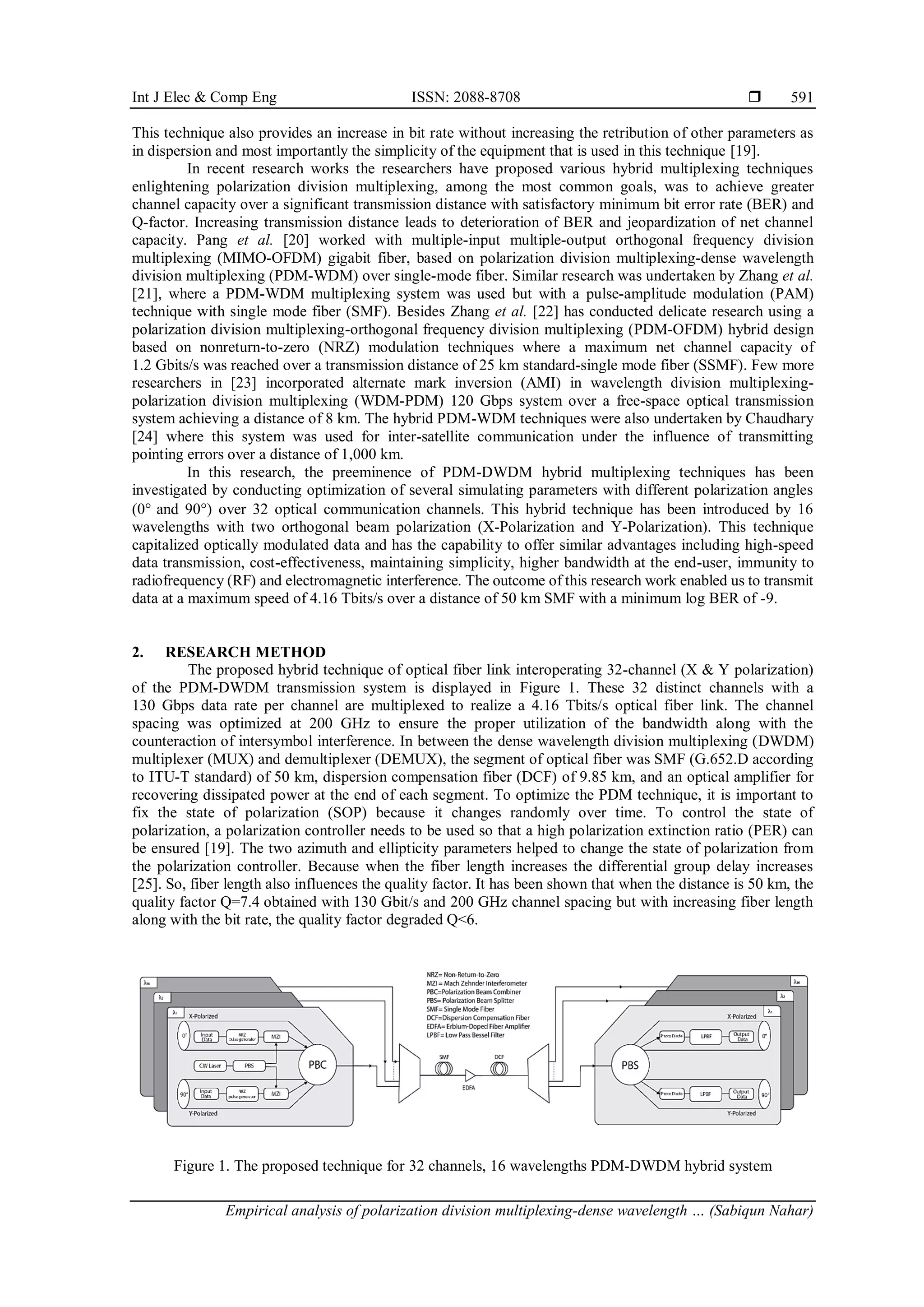 This paper investigates a hybrid multiplexing technique combining Polarization Division Multiplexing (PDM) and Dense Wavelength Division Multiplexing (DWDM) to enhance channel capacity with a configuration that allows for 32 channels of 130 Gbps each, achieving a net transmission rate of 4.16 Tbps over 50 km of single-mode fiber. The study analyzes the effects of optimized channel spacing and systematic parameters on performance, ensuring a minimum bit error rate of 10^-9. These findings contribute significantly to addressing the rising demand for high-speed data transfer in fiber optic communication systems.