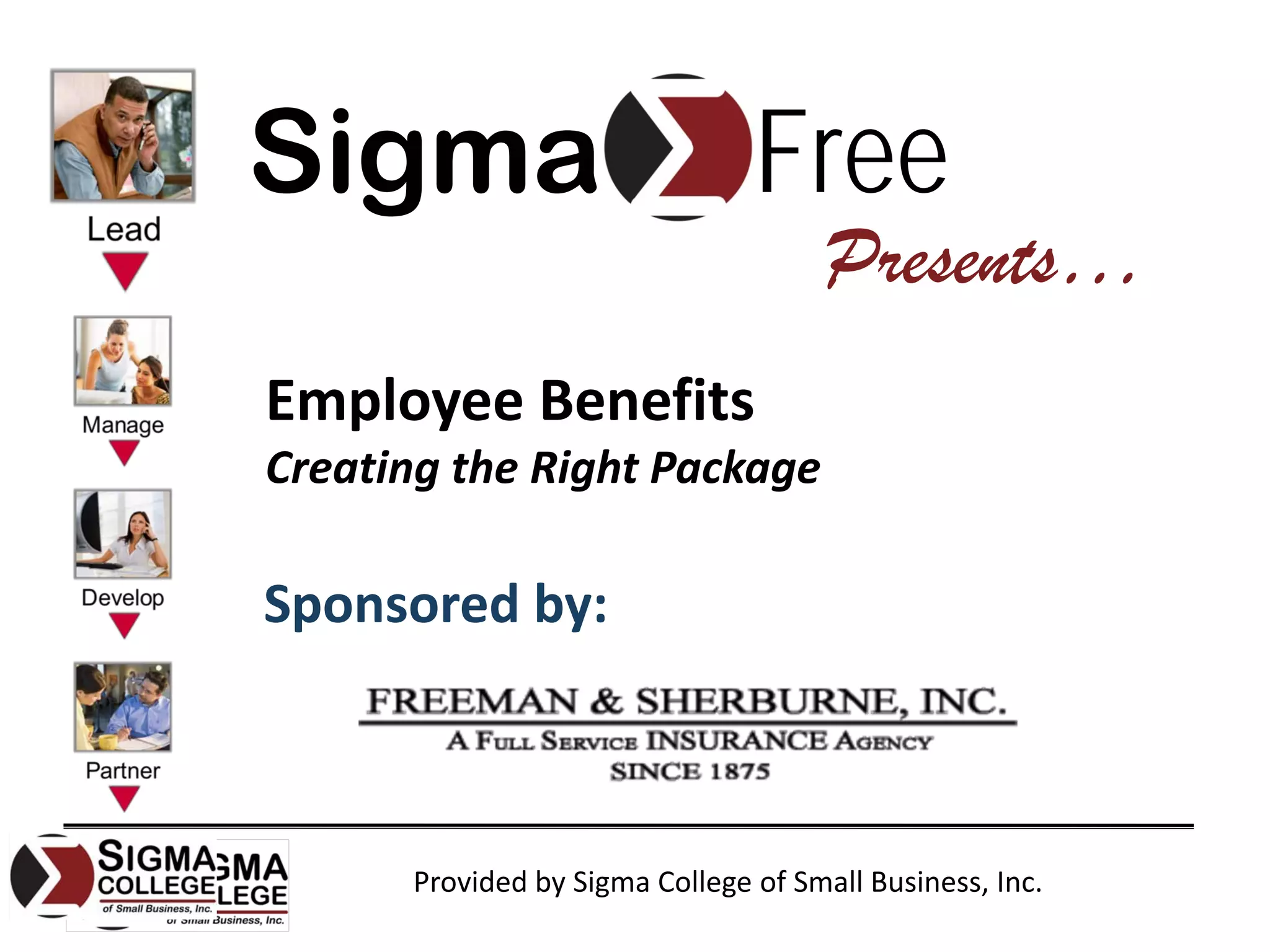 Sigma Free Presents… Employee Benefits Creating the Right Package Sponsored by: Provided by Sigma College of Small Business, Inc.
