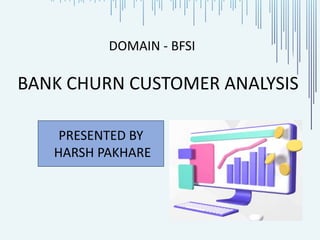 The document presents a project on customer churn analysis in the banking sector, emphasizing the importance of customer retention and data-driven strategies to mitigate churn. It outlines the steps taken, including data exploration, model building using decision tree, random forest, and XGBoost classifiers, and highlights that the random forest model achieved the highest accuracy of 92.39%. Overall, the analysis aims to provide insights for better resource allocation and personalized customer engagement.