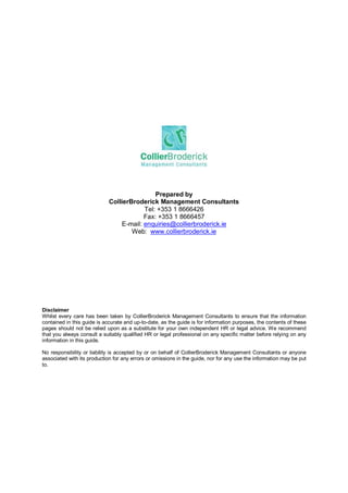 This document is a brief guide on workplace policies and procedures, emphasizing the importance of clear communication and legal compliance to protect against employee challenges. It outlines essential, highly recommended, and desirable policies that employers should implement and maintain, along with best practices for their preparation and communication. The guide also stresses the need for consistency, regular updates, and explicit consequences for policy breaches to ensure effective governance in the workplace.