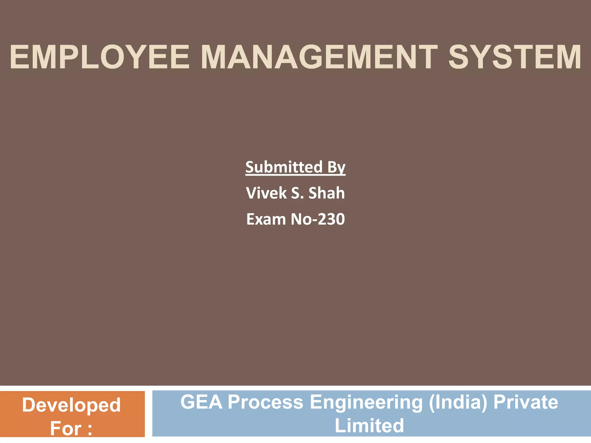 The document describes an employee management system developed for GEA Process Engineering (India) Private Limited. It includes sections on the existing system, requirements for a new system, hardware and software needs, project management, system users, analysis, design, implementation, testing, screenshots and future enhancements. The system allows administrators to add, edit and verify employee information, line managers to access reports on their department employees, and employees to access their own details. It aims to reduce workload and improve information management over the previous system.