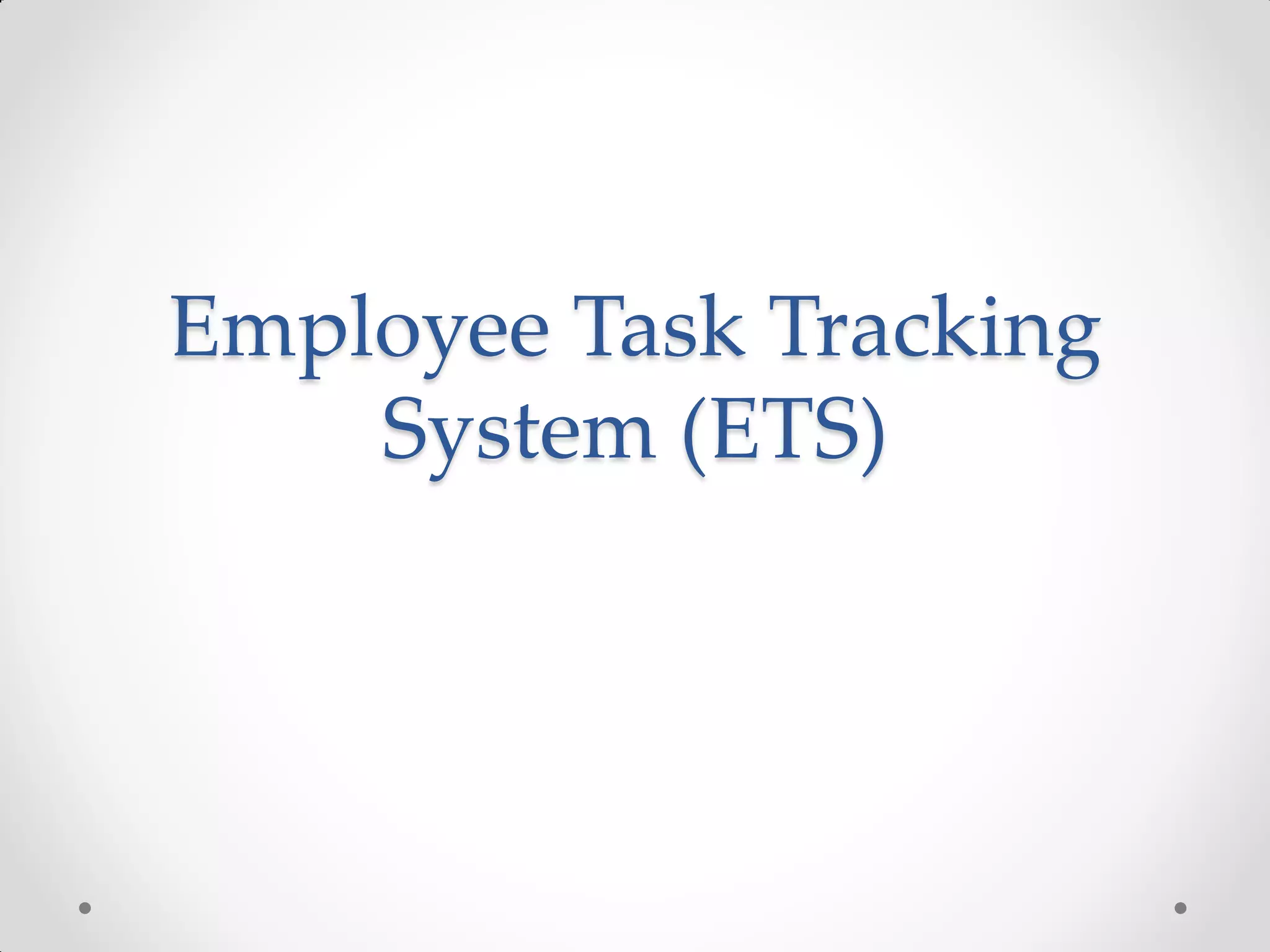 The document describes an Employee Task Tracking System (ETS) that allows managers to define projects and tasks, assign tasks to employees, track task status and time spent, and generate reports. Key functions include creating projects and tasks, assigning tasks to employees, recording task time, updating task status, creating employee logins, and generating activity and history reports. The system architecture, database design, user interfaces, and test cases are also documented.