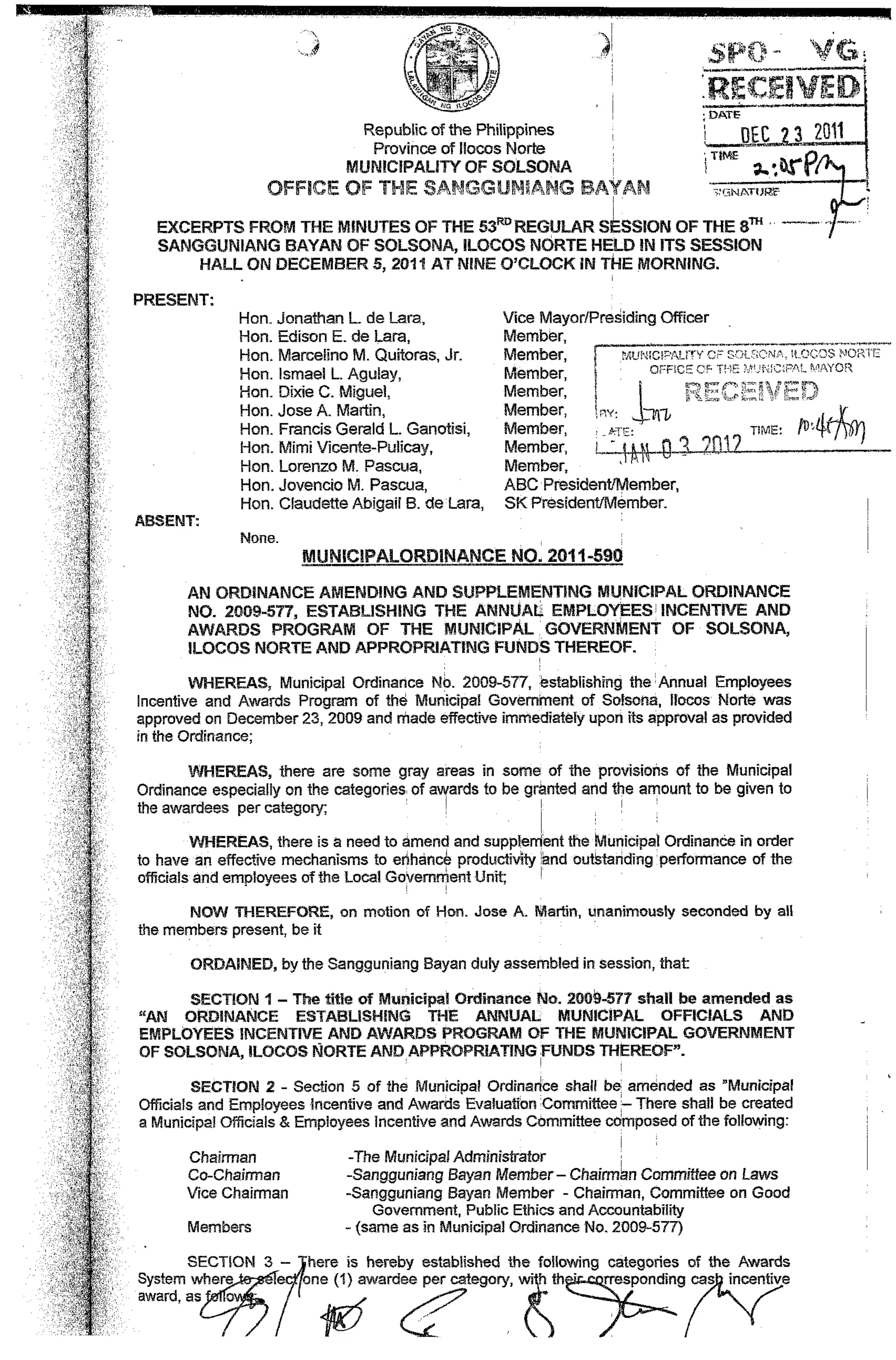 EMPLOYEES INCENTIVE AND AWARDS PROGRAM ORDINANCE