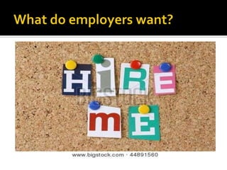 The document discusses employment communication and the job search process. It provides tips for job seekers on conducting self-assessment, developing a support network, maintaining a positive attitude, being organized and setting goals. It also discusses important documents for applying to jobs like application forms, resumes and CVs. The key stages of job search are identified as assessing resources, identifying employers, applying, and interviewing.