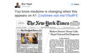 The document discusses empowering healthcare through technology that is safe, works for everyone, and leaves no one behind. It describes how digital technologies are disrupting traditional healthcare models and outlines opportunities to enhance patient and provider experiences through virtual care, remote monitoring, and analytics. Key goals are mentioned like reducing readmissions, increasing effectiveness, and improving clinical productivity. The future of healthcare is envisioned as personalized, connected, data-driven, and empowering every person and organization to achieve more through technology.