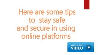 The document discusses online safety, security, ethics, and etiquette, emphasizing the importance of identifying internet threats such as malware, identity theft, and phishing. It encourages responsible behavior when sharing information online and suggests creating awareness posters about online safety. The text also highlights the rise of cybercrime during the COVID-19 pandemic and stresses the need for digital citizenship to protect oneself in the online world.