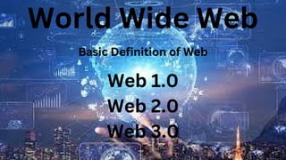 Web 1.0 consisted of a small number of people creating web pages and content for a large audience to access information. Web 2.0 emphasized user-generated content, interactivity, and ease of use, allowing many people to generate content for a growing audience through social media and collaboration. Web 3.0, still developing, will utilize artificial intelligence and machine learning to process content conceptually on decentralized platforms, moving away from centralized social networks.